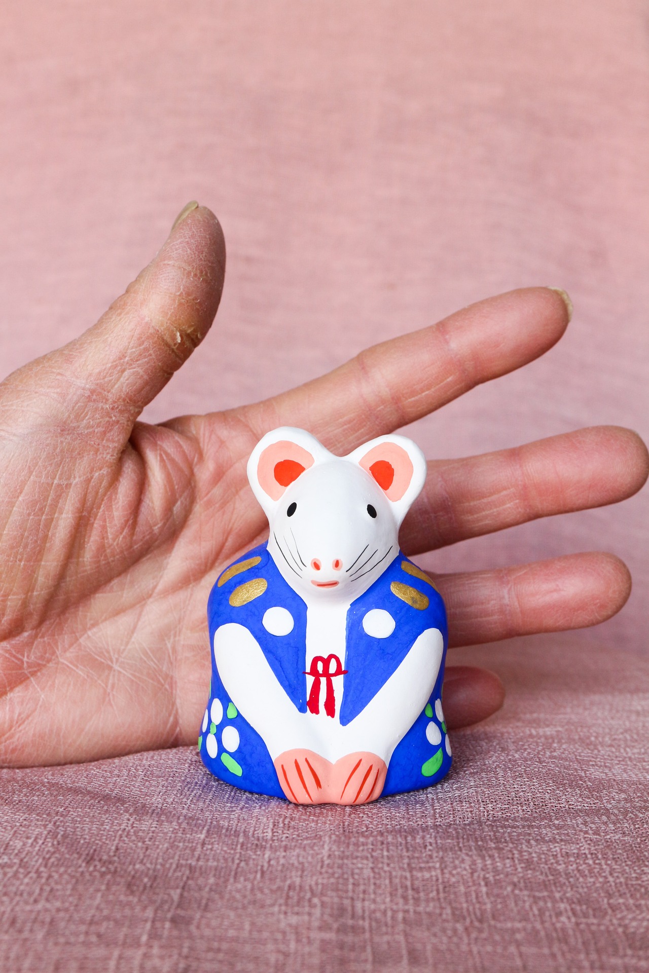 こらんしょ人形 ねずみ 青いちゃんちゃんこ。