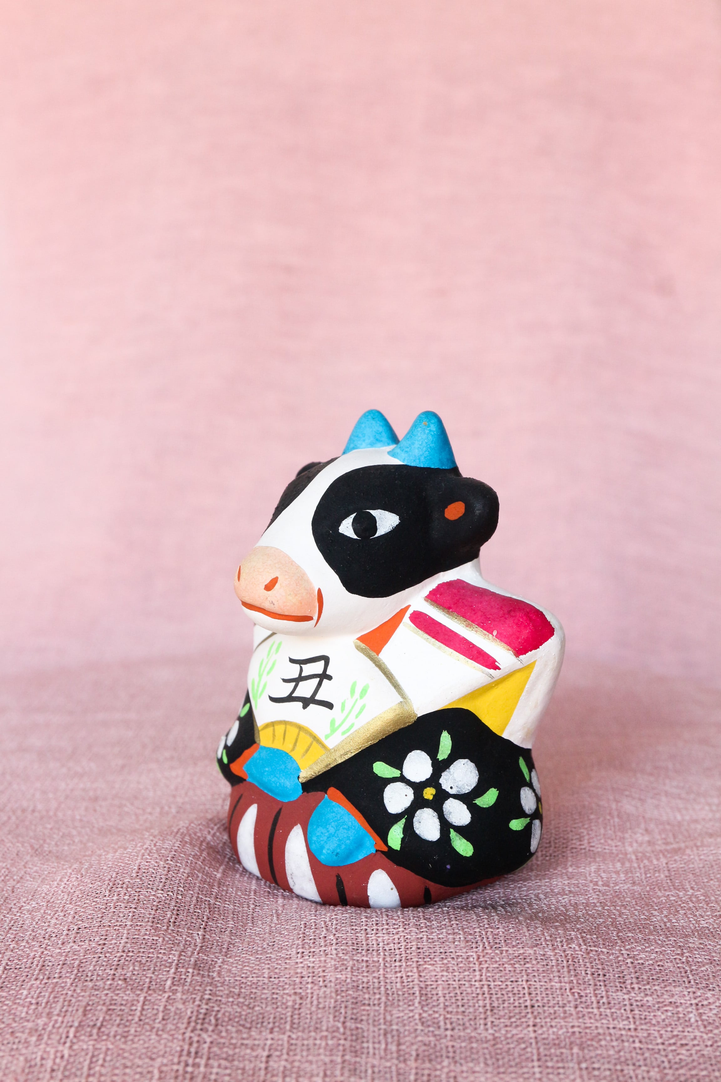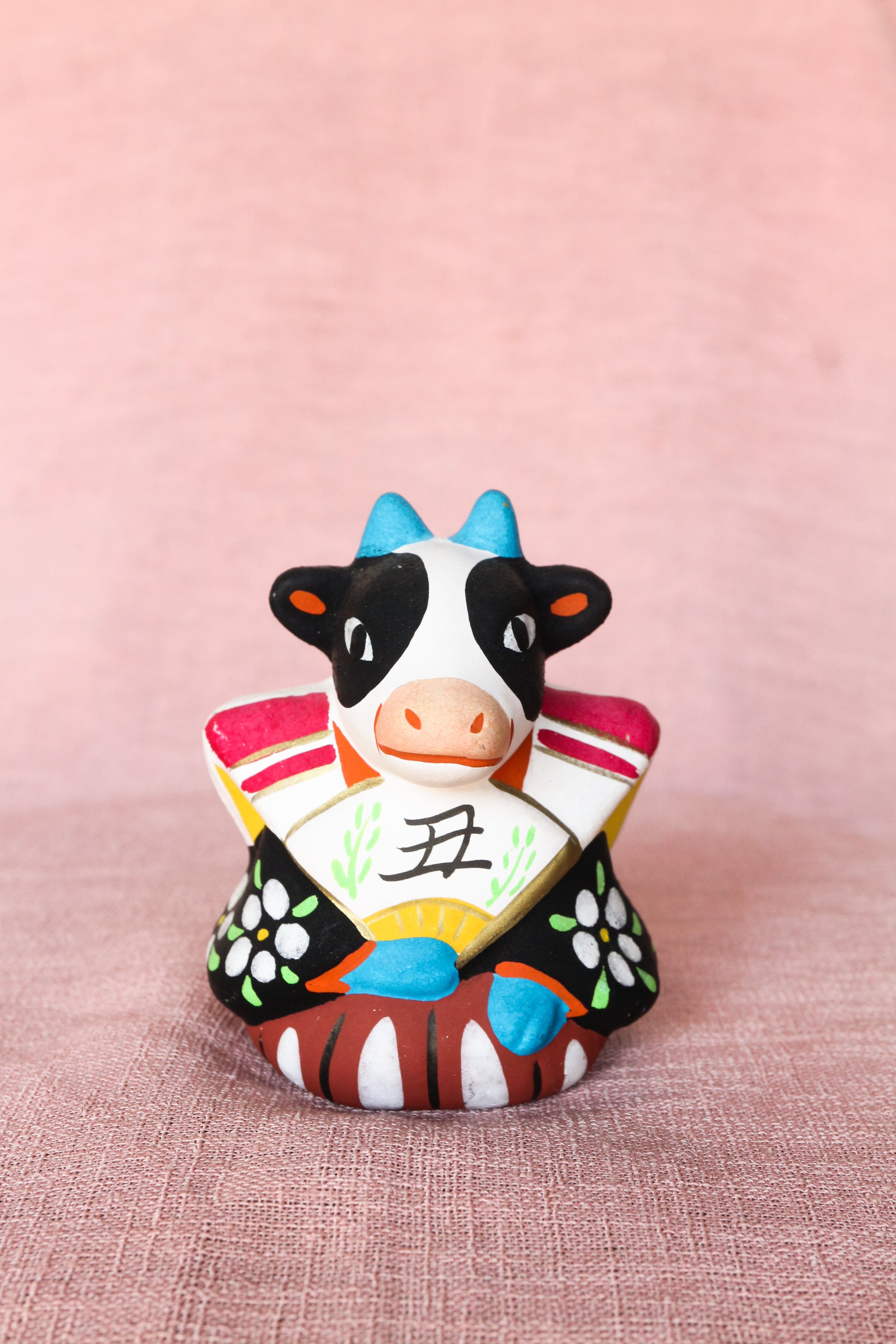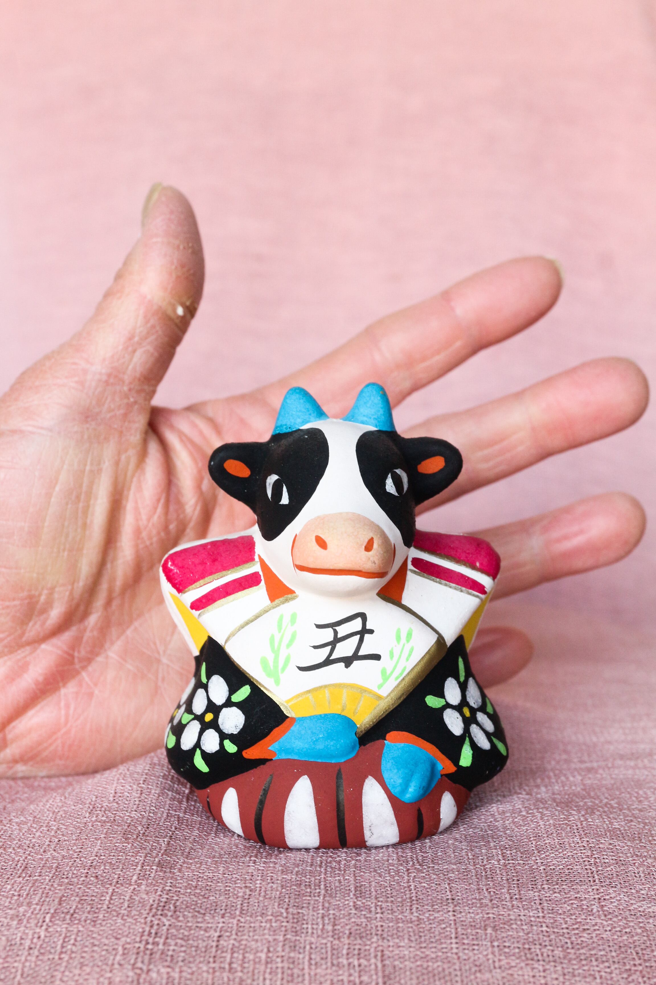 扇持ち人形 牛 会津中湯川人形 土人形